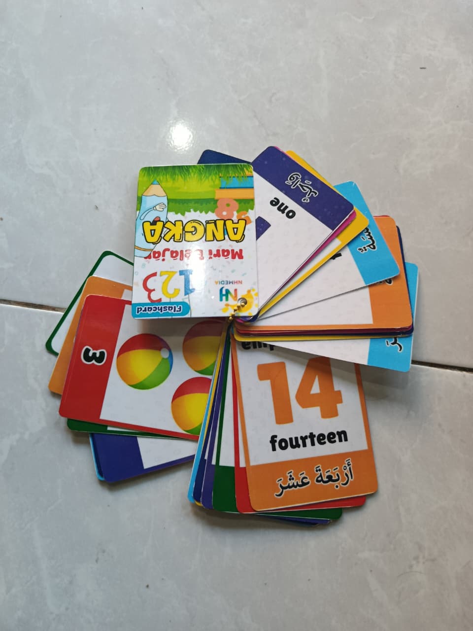 Flashcard Seri Angka membantu anak mengenal angka dari 1-20 dengan 3 bahasa